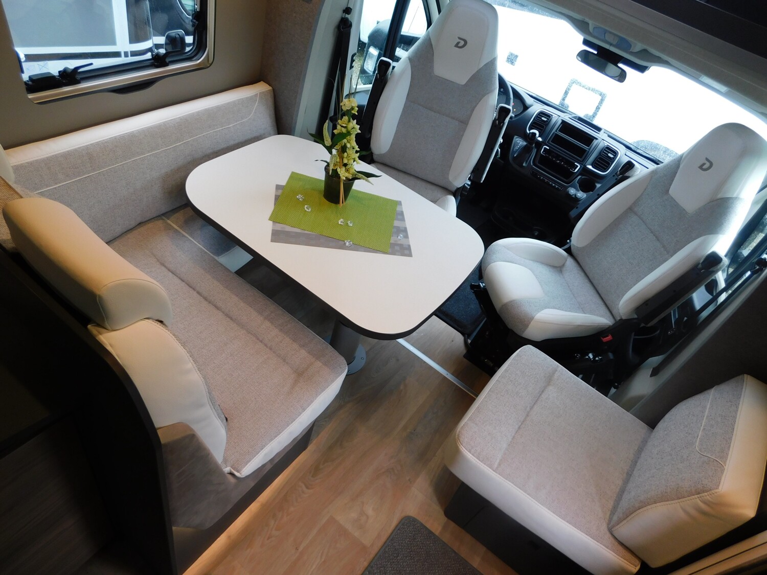 - Family-Paket T 6817, 7057 EB (Wohnraumtür mit Fenster inkl. Verdunkelung und Zentralverriegelung (inkl. Fahrerhaustür), Verdunklungsjalousien im Fahrerhaus, Light Moments: Indirekte Ambientebeleuchtung über den Dachstauschränken, Light Moments: Indirekte Wandflächen-Ambientebeleuchtung, Light Moments: Küchenrückwand beleuchtet, Light Moments: Indirekte Beleuchtung im Badezimmer mit beleuchteter Duschkonsole, Light Moments: Eingangsmodul mit indirekter Beleuchtung, Light Moments: Verkleidete Sitztruhenwange mit indirekter Beleuchtung, Gemütliche L-Sitzgruppe mit freistehendem, absenkbarem Tischfuß und 2 integrierte 3-Punkt-Gurte, Bettumbau Einzelbetten zu Doppelbett)